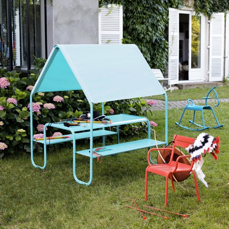Esta pieza versátil funcionaría tanto en el jardín como en el patio, para usarse como un lugar para almorzar, jugar, hacer manualidades o simplemente sentarse y disfrutar del aire fresco.